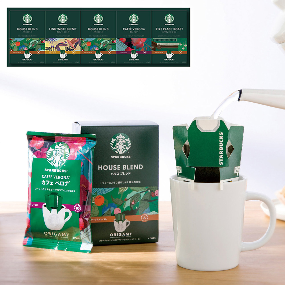 ■規格:スターバックスオリガミパーソナルドリップコーヒー(ハウスブレンド9g×4袋2箱・パイクプレイスロースト・ライトノートブレンド・カフェベロナ各9g×4袋1箱)