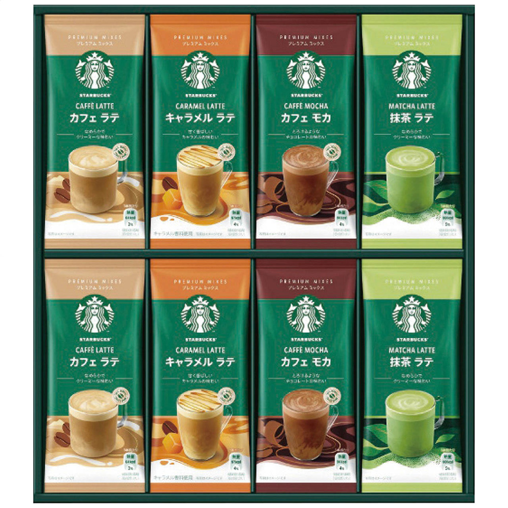 カフェラテ好きのご家庭にぴったりな贈り物。スターバックスの味わいをご自宅で簡単に楽しめるプレミアムミックスが入ったギフト。