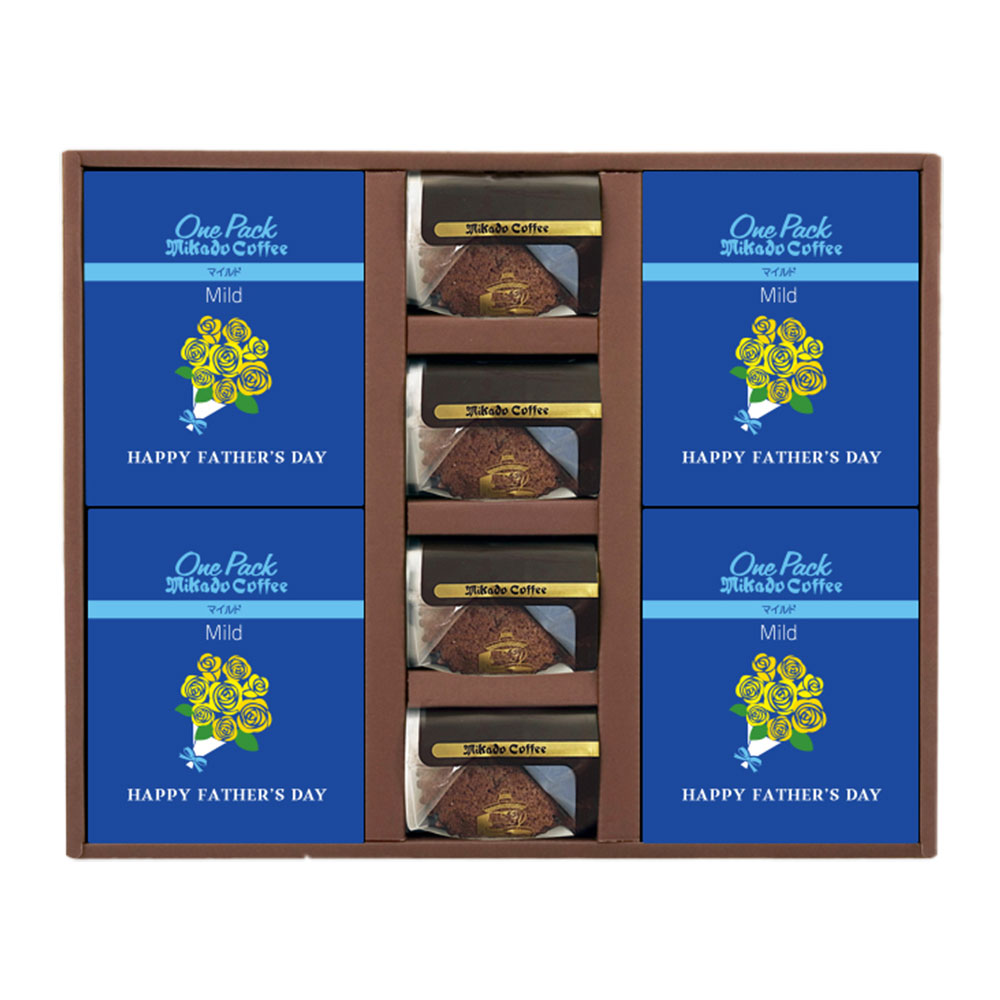 1948年、東京・日本橋創業の老舗コーヒーロースター、ミカド珈琲がお届けする、しっとり濃厚なチョコレートの焼菓子と、いつでもどこでもお湯を注ぐだけで手軽にレギュラーコーヒーの味わいをお楽しみいただける父の日専用パッケージのワンパックコーヒーギフトです。酸味と苦味のバランスが良いマイルドな味わいです。