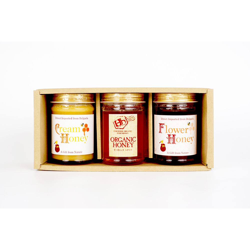 ブルガリア産のハチミツを3種集めました。厳格に定められたEUの有機認証をクリアしたオーガニック蜂蜜。トロリとしたクリーム状の蜂蜜を自然のまま詰めたクリームハニー。癖が少なく、お召し上がりやすいフラワーハニー。それぞれの違いをお楽しみください。