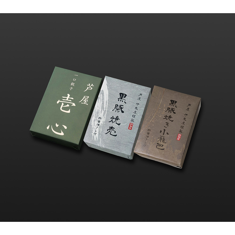 芦屋 一口餃子「壱心」「黒豚焼売」「黒豚焼き小籠包」のセット。