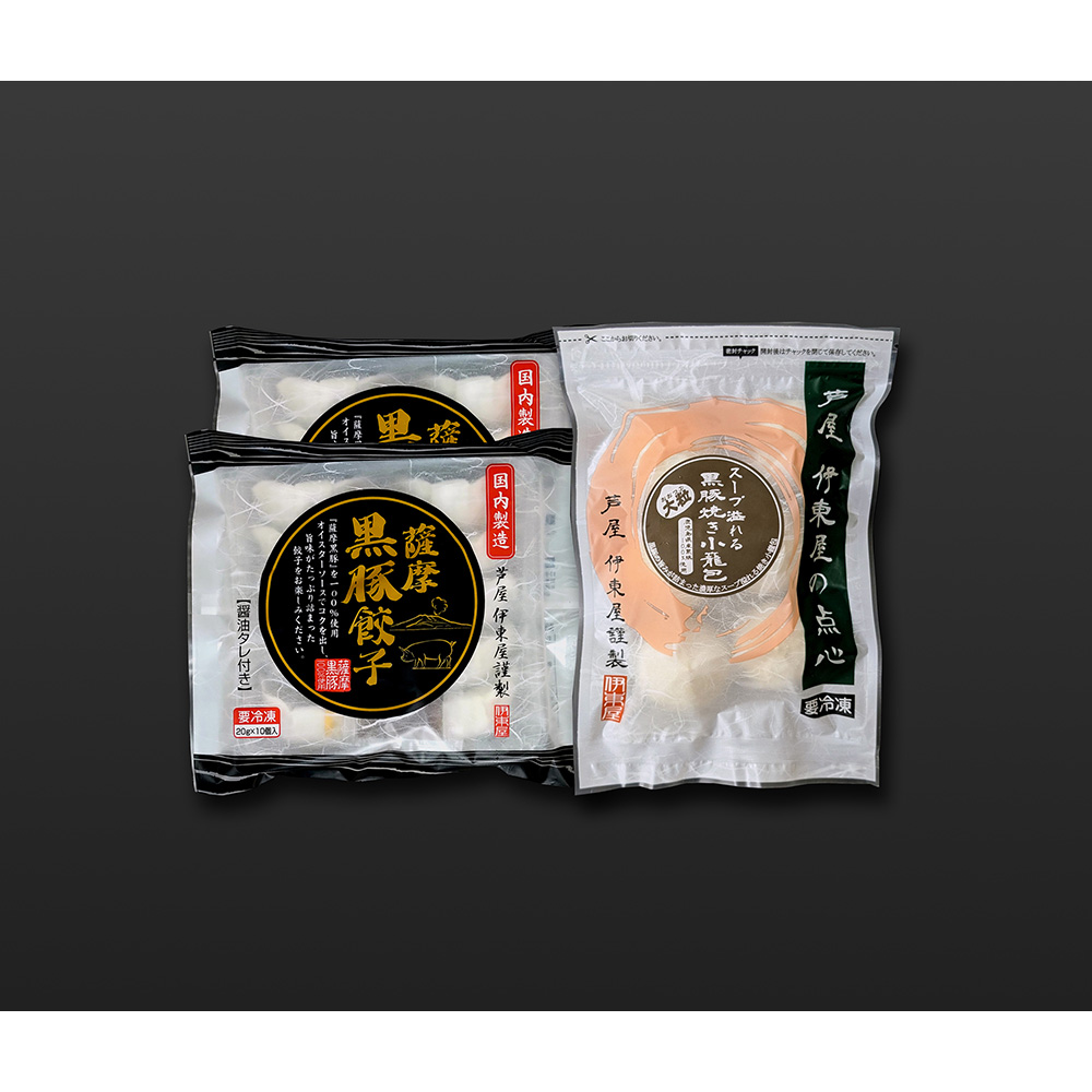 兵庫 「芦屋 伊東屋謹製」 薩摩黒豚餃子と大粒・黒豚焼き小籠包セット(薩摩黒豚餃子(20g×10個入)×2、黒豚焼き小籠包(40g×6個入)×1 ) / 冷凍 送料無料