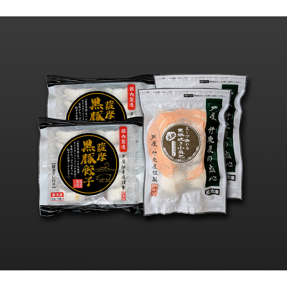 兵庫 「芦屋 伊東屋謹製」 薩摩黒豚餃子と大粒・黒豚焼き小籠包セット(薩摩黒豚餃子(20g×10個入)×2、黒豚焼き小籠包(40g×6個入)×2) / 冷凍 送料無料