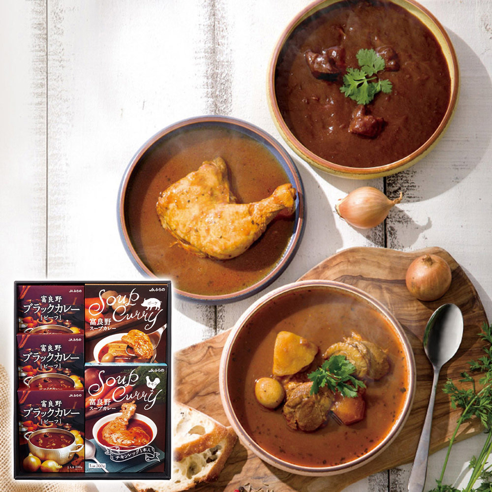 JAふらの 富良野カレーセットA(富良野ブラックカレービーフ3個・富良野スープカレー(チキンレッグ入・厚切り豚バラ肉入各1個)) FCS-A 1243-035 / 常温 送料無料 セット カレー 北海道