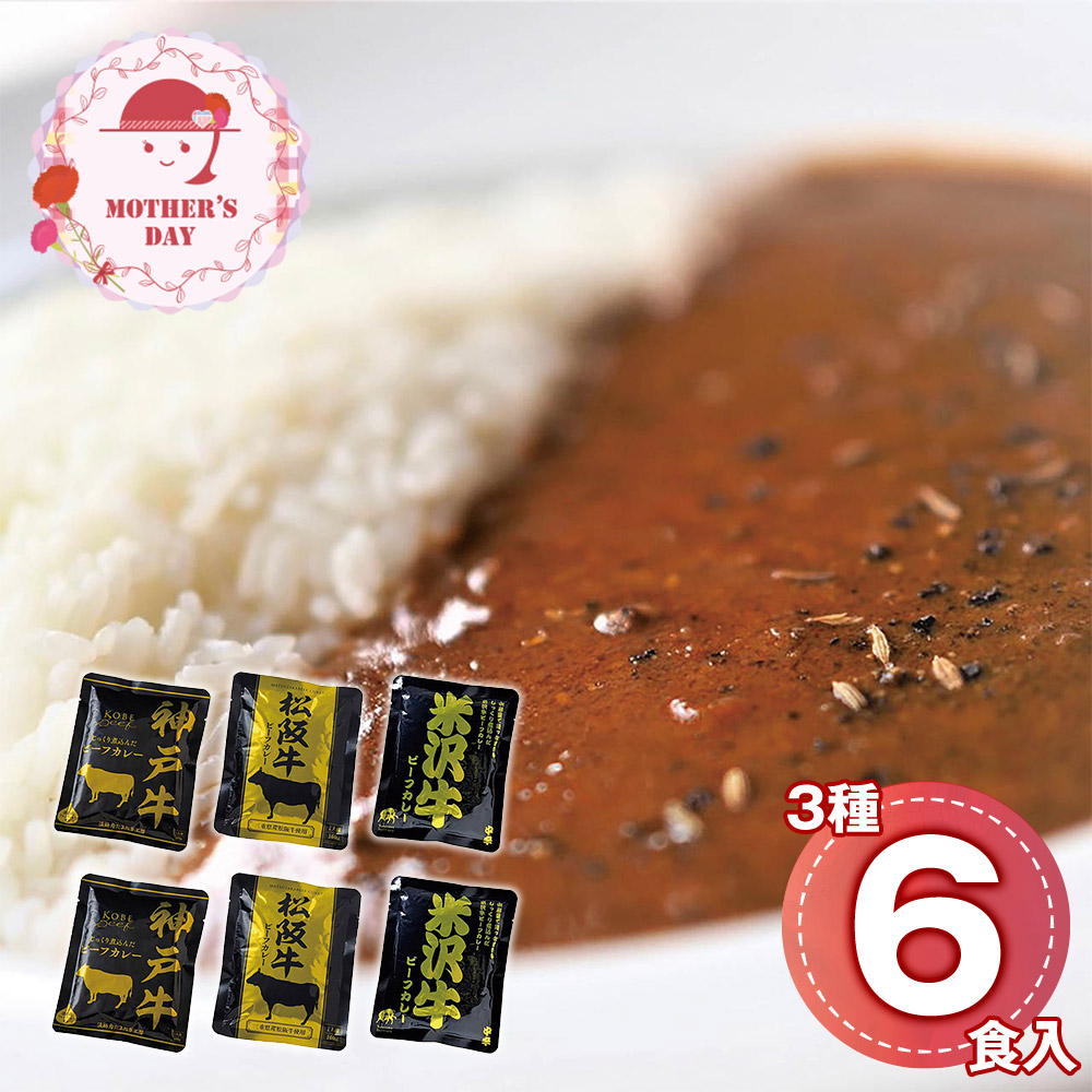 【母の日】 日本三大和牛 ビーフカレー詰合せ(神戸牛、松阪牛、米沢牛×各2) 4027-30 1852-505 【二重包装不可】《お届け期間:2026年5月8日~2026年5月10日》 / 常温 送料無料 セット ギフト カレー