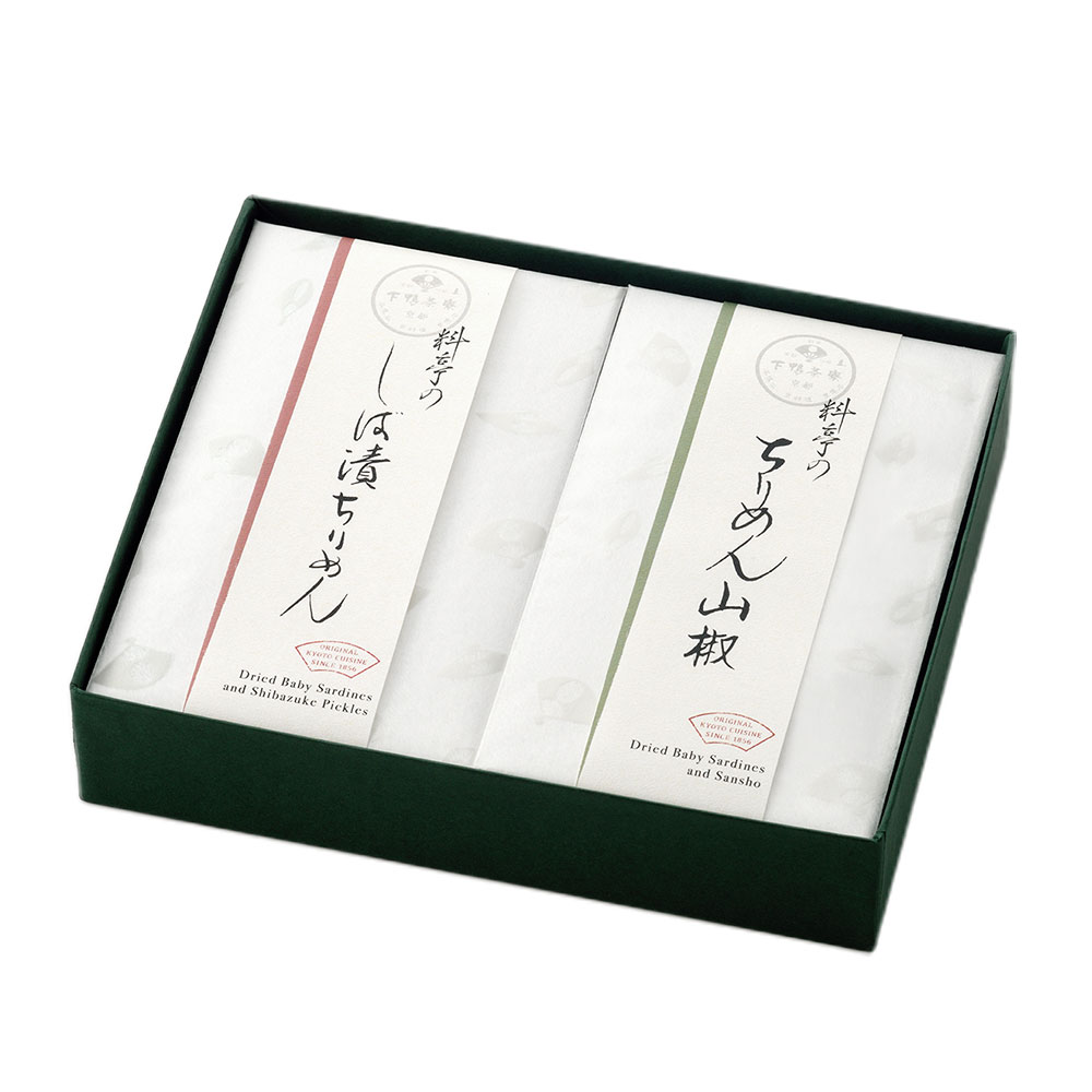 丹念に漬けあげたしば漬けの小切を良質のちりめんとほどよく絡み合わせた「しば漬けちりめん」と職人が昔ながらの手法で上品に炊き上げた「ちりめん山椒」。どちらも下鴨茶寮の人気商品です。