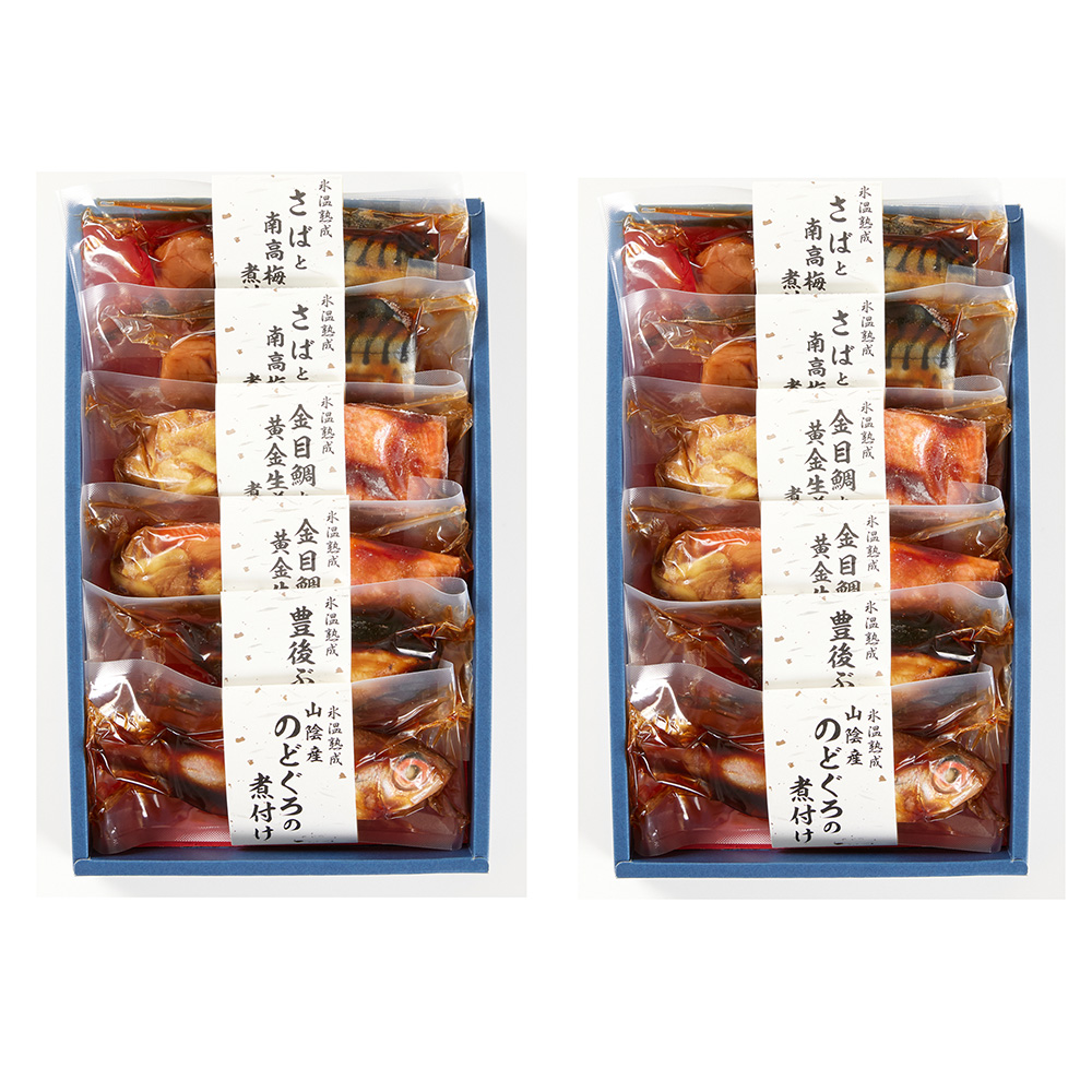 ■規格:(金目鯛と黄金生姜の煮付け100g×2、さばと南高梅の煮付け110g×2、豊後ぶりの照焼き90g×1、山陰産のどぐろの煮付け85g×1)×2