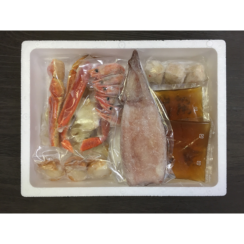■規格:ゆでずわいがにカット200g×1袋、ボイル海老×6尾、ボイル帆立×3個、かに入つみれ×3個、ツボ抜きいか100g×1尾、冷凍生ラーメン80g×1玉、たれ(濃縮:塩仕立て)50ml×2袋