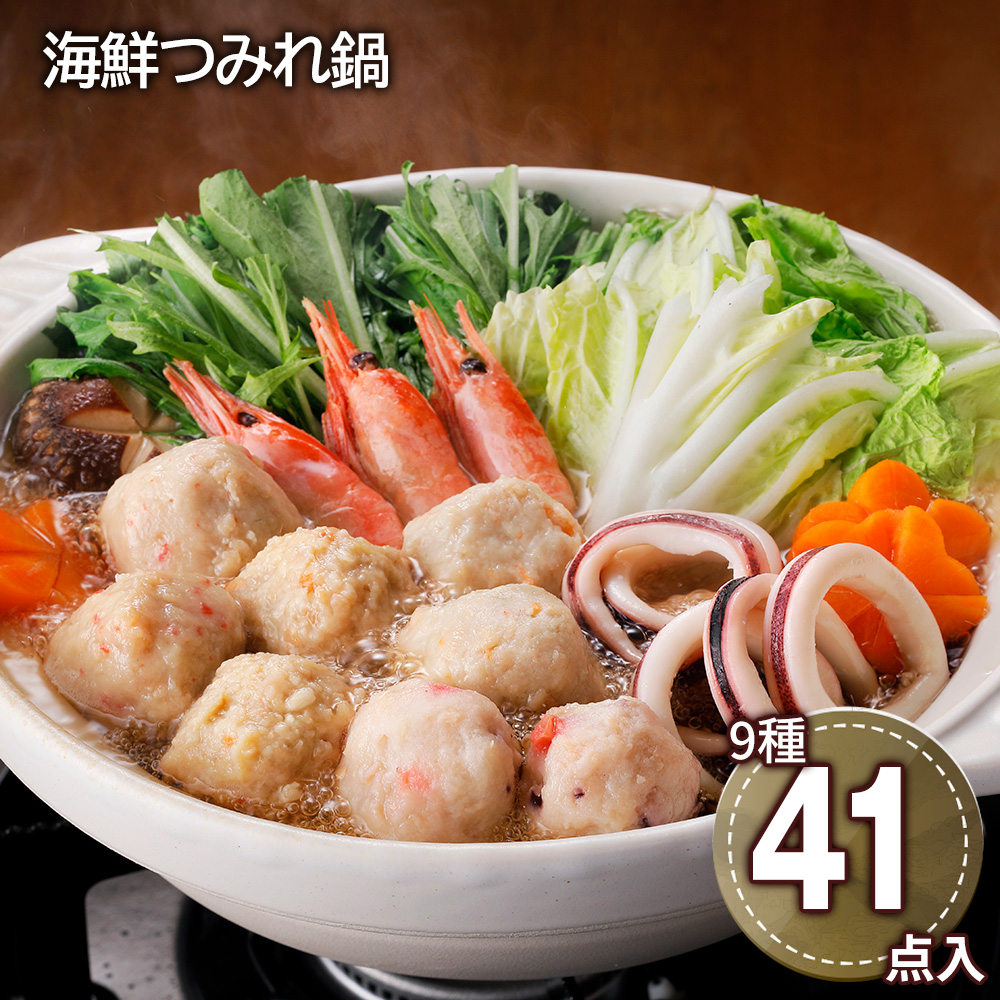 「かに入つみれ」・「えび入つみれ」・「とりごぼうつみれ」・「たこ入つみれ」など、ボリュームいっぱいのつみれを主役に「えび」や「いか」等の魚介を詰め合わせました。「4種のつみれ」と「各具材」の旨味が鍋いっぱいに広がります。ご自宅の野菜も一緒に煮込んでからお楽しみください。