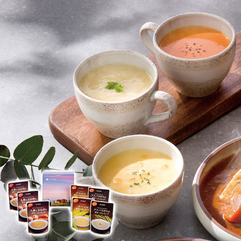 JAふらの 富良野ポタージュセットA(コーン・アスパラガス各2個・人参と玉ねぎ3個) FPS-A 1243-047 / 常温 送料無料 セット スープ 北海道
