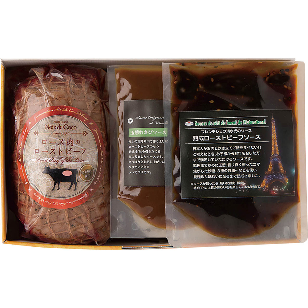 ■規格:ローストビーフ300g(部位:ロース)、熟成ローストビーフソース60g、玉ねぎわさびソース50g