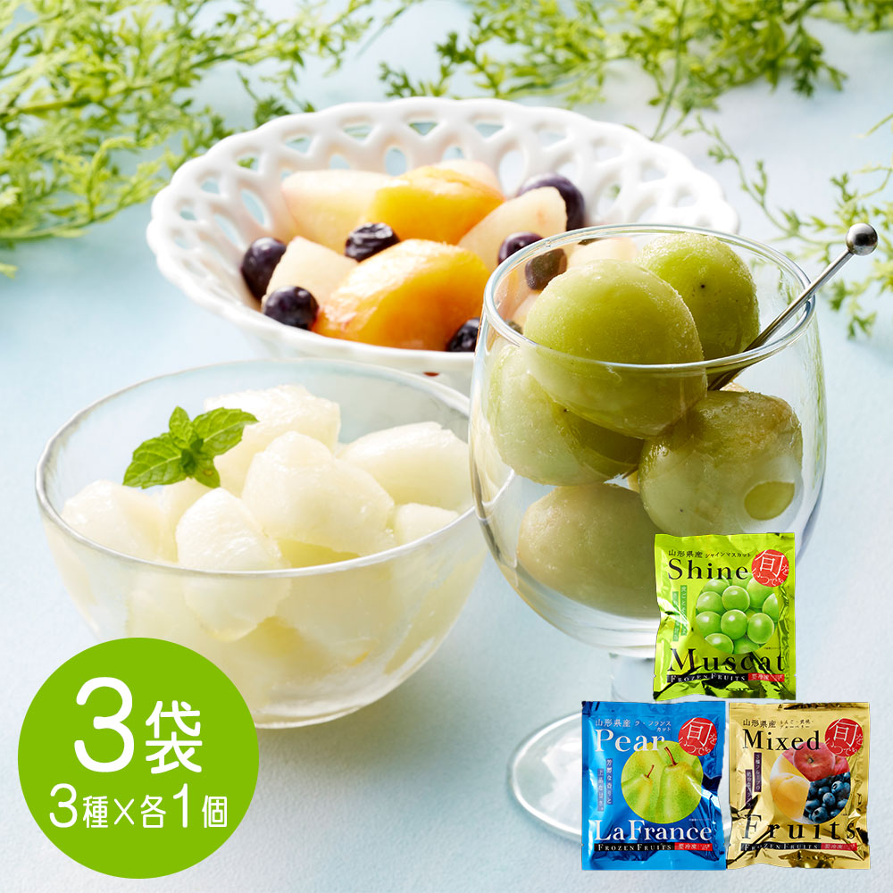 山形 「凍眠フルーツ」 3種セット(シャインマスカット、ラ・フランス、ミックスフルーツ) / 国産 冷凍フルーツ 送料無料