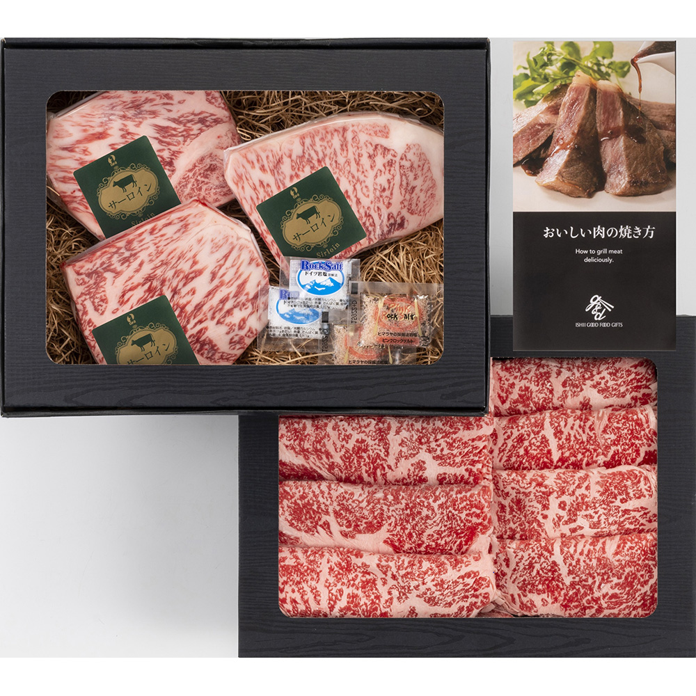 ■規格:和牛サーロインステーキ450g(150g×3)、和牛ローススライス350g、ピンク岩塩2g(1g×2)、岩塩2g(1g×2)
