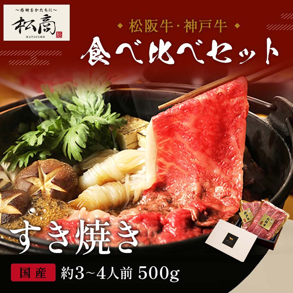 神戸牛&松阪牛食べ比べセット すき焼き・しゃぶしゃぶ用 肩ロース 250g×2P(各1P) / 牛肉 ギフト 送料無料