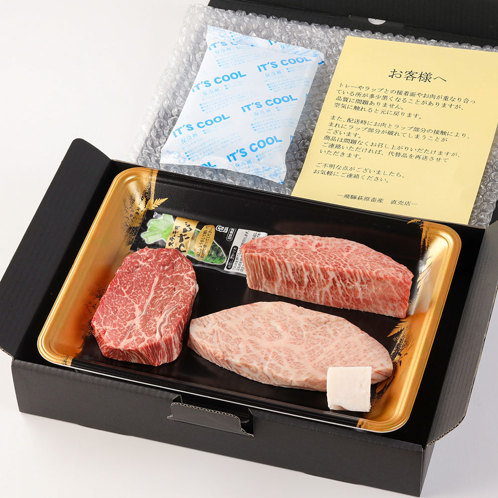 飛騨牛 ステーキ3種食べ比べ イチボ&ランプ&ミスジ 各100g × 3枚 / 牛肉 ギフト 送料無料
