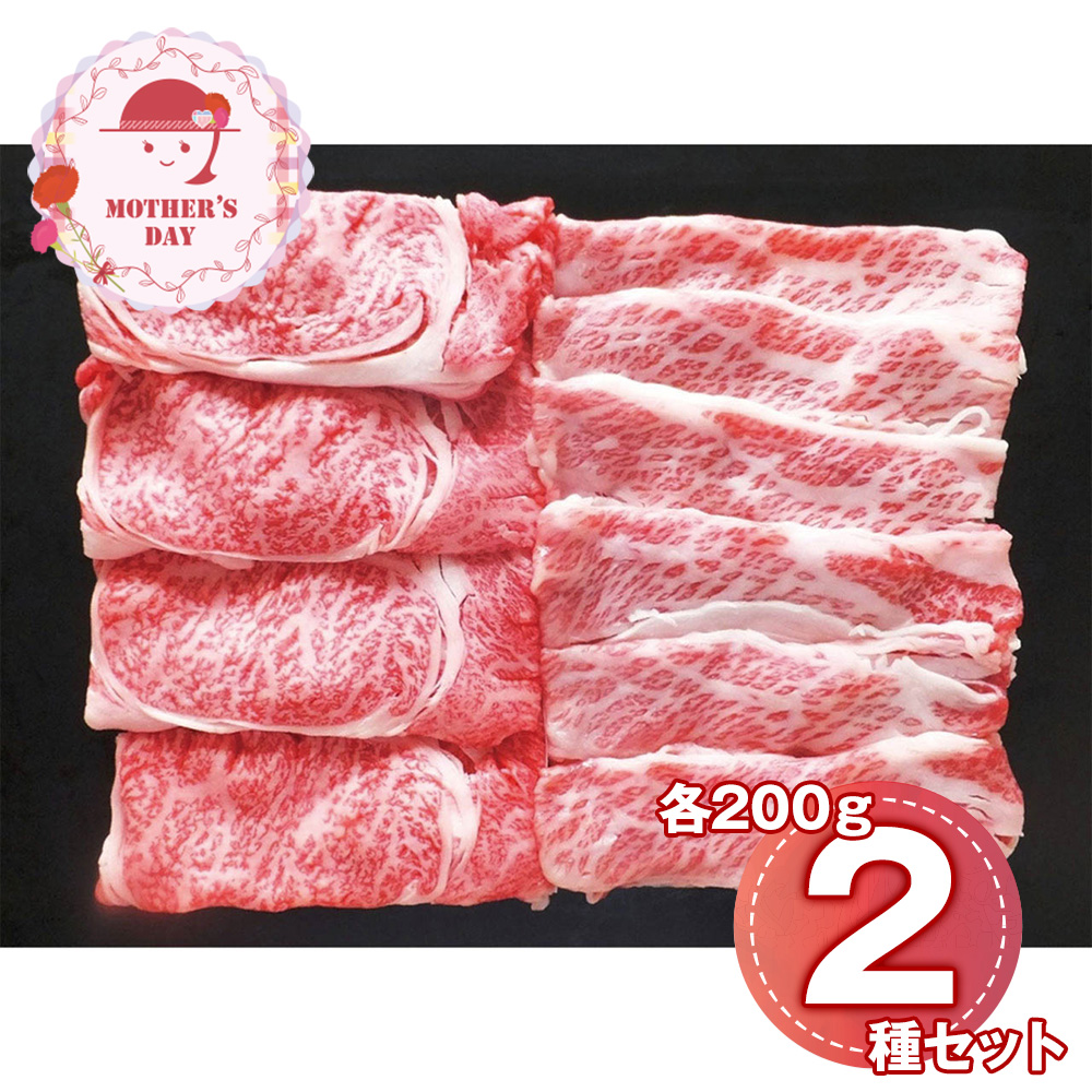 【母の日】 蔵王牛すき焼食べ比べ(肩ロース、バラ各200g) 6512-70 1852-909 【二重包装不可】《お届け期間:2026年5月8日~2026年5月10日》 / 冷凍 送料無料 セット ギフト すき焼き 食べ比べ