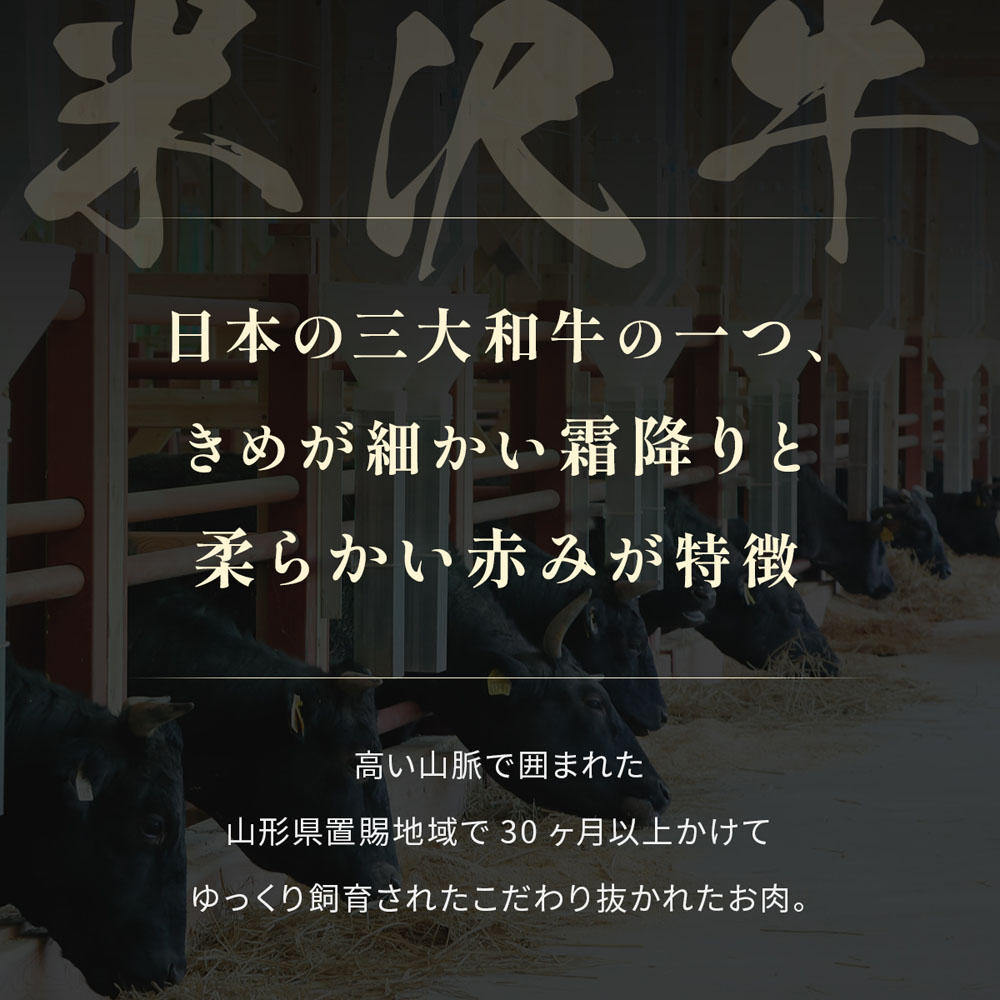 四季折々の自然に恵まれた置賜盆地の豊かな環境と、肥育農家の繊細な管理や深い愛情によって育まれます。きめ細かく上品な霜降りは口の中でとろけ、まろやかな旨味と上質な甘みが広がります。しっとりと柔らかな肉質と香り高い風味が、格別な余韻を残します。