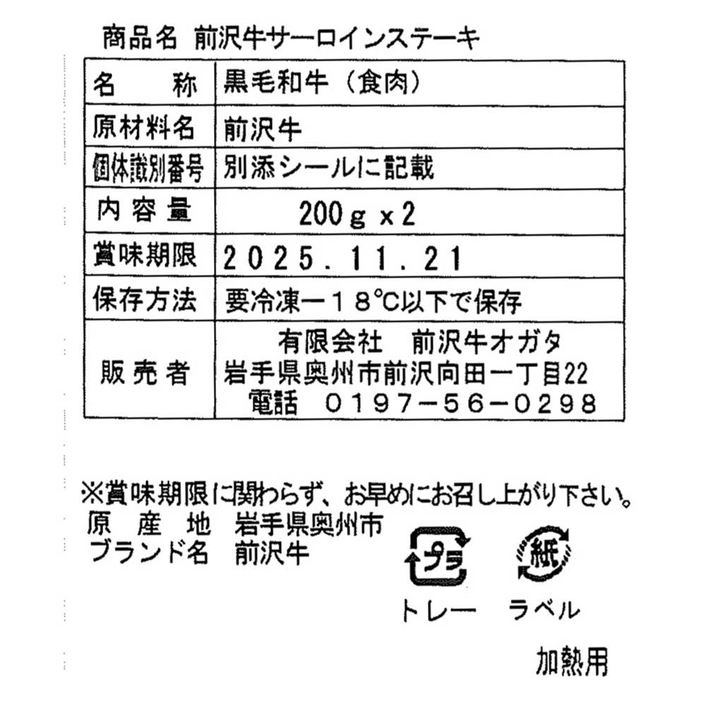 岩手 「前沢牛オガタ」 前沢牛サーロインステーキ 200g×2 / 牛肉 ステーキ 送料無料