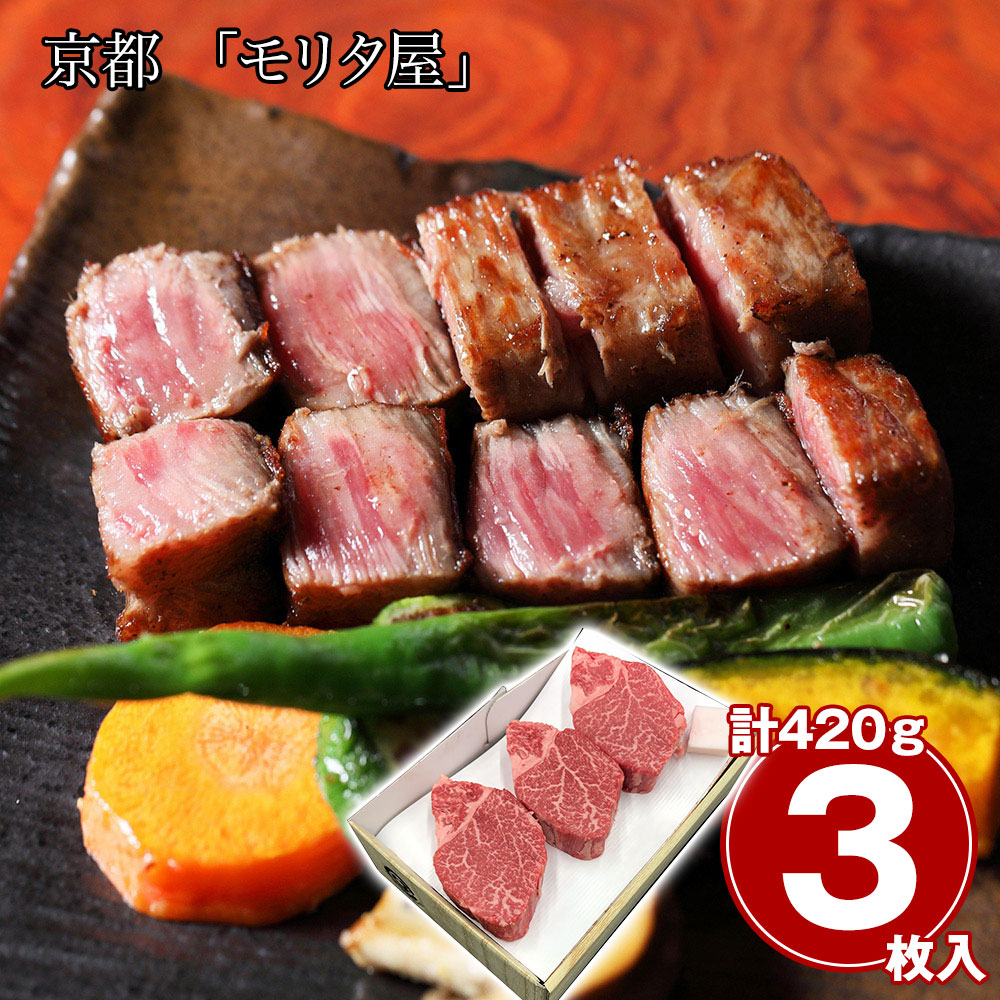 京都 「モリタ屋」 黒毛和牛ヒレステーキ 3枚 計420g / 冷凍 送料無料