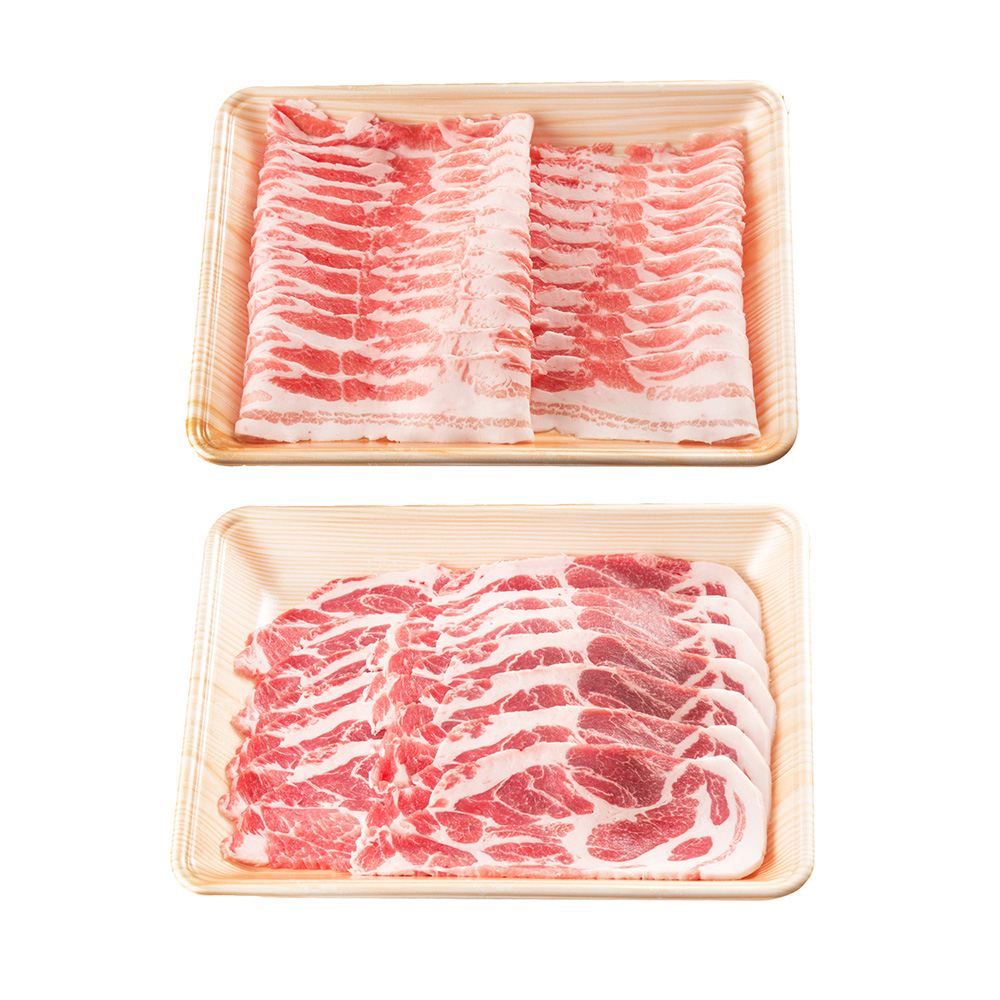 岐阜県特産の豚肉「ボーノポーク岐阜」のばら肉薄切りと肩ロース焼肉の食べ比べをご用意しました。あっさりとしたバラ肉ともっちりとした食感の肩ロース肉それぞれのお肉の食感や旨味をお楽しみください。