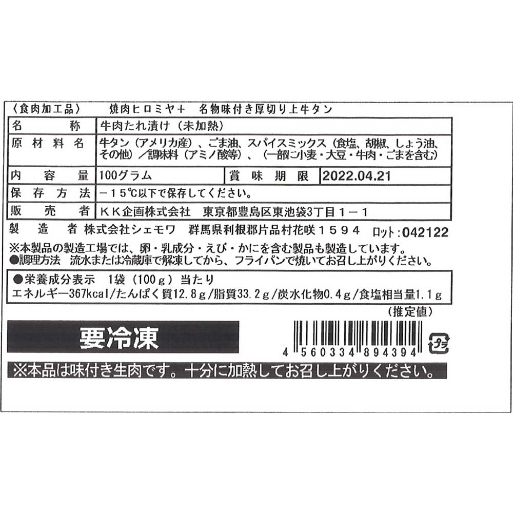 ■規格:味付き特製黒毛和牛ロース110g、味付き特製黒毛和牛カルビ125g、名物味付き厚切り牛タン100g 各1P