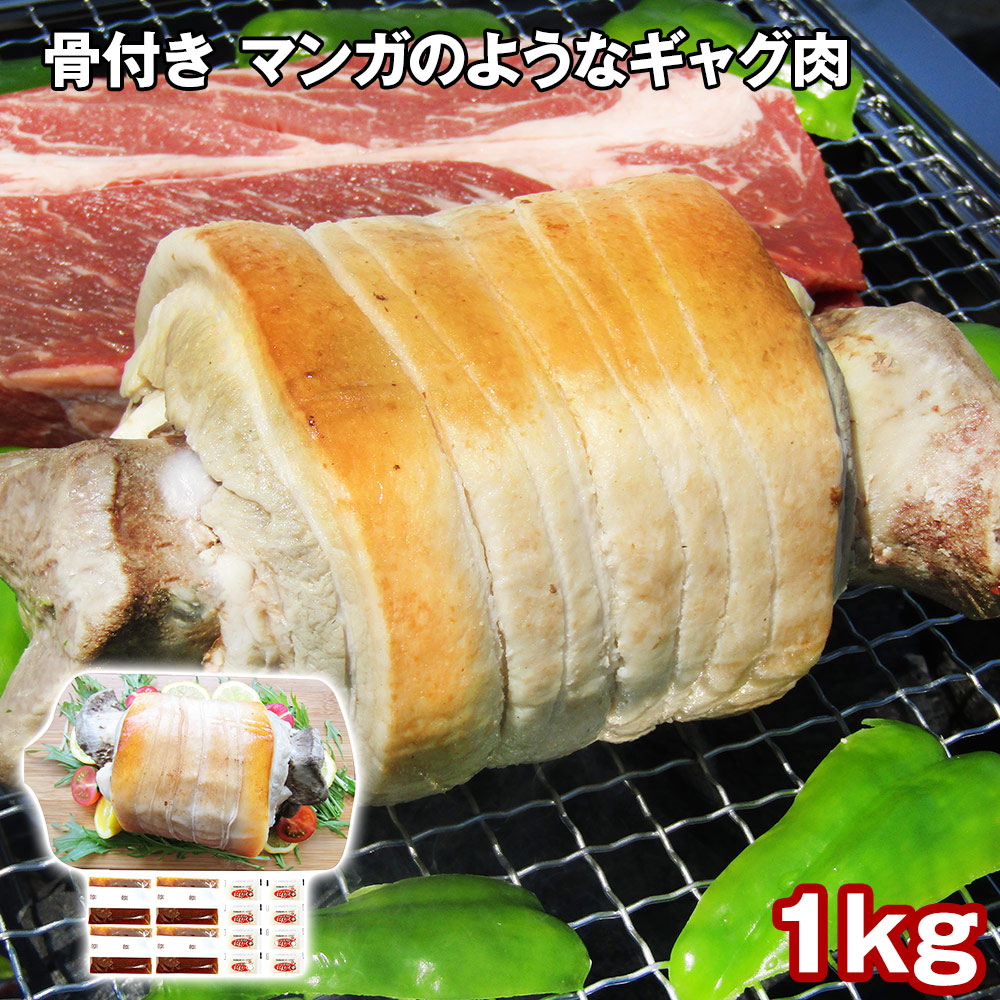 骨付き マンガのようなギャグ肉 / 冷凍 送料無料 マンガ肉 BBQ バーベキュー 豚肉 豚バラ 1kg タレ付