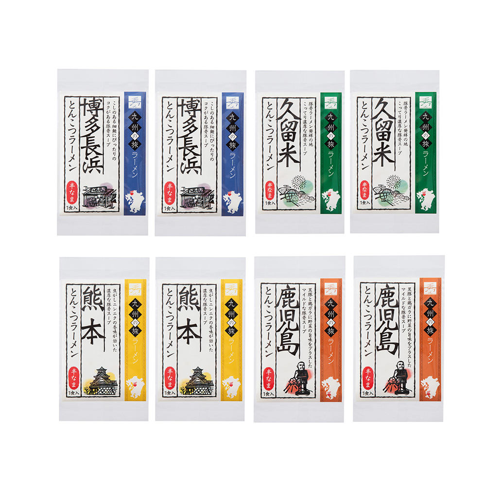 ■規格:(久留米ラーメン、博多長浜ラーメン、長崎ラーメン、熊本ラーメン、佐賀ラーメン、大分ラーメン、宮崎辛麺、鹿児島ラーメン)×各1食