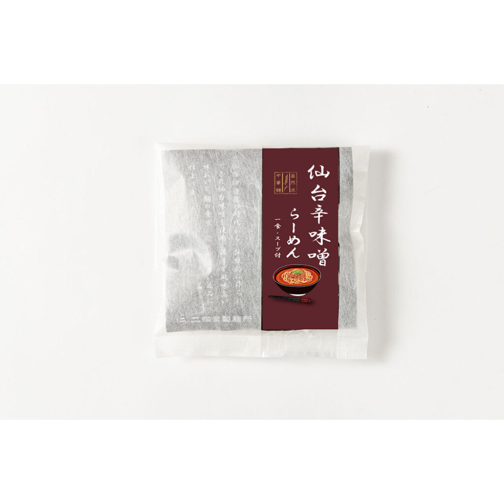 二階堂製麺所の自然派中華麺は、乾燥にかける時間が3日間。手間ひまを惜しまず乾燥させた麺はまるで生麺のような食感。スープは地元登米市で100年以上続く老舗の味噌蔵「ヤマカノ醸造」の仙台味噌と唐辛子を調合。深いコクとまろやかな旨味の中にピリッとした辛みを効かせた後引く旨辛スープで麺にしっかり絡みます。
