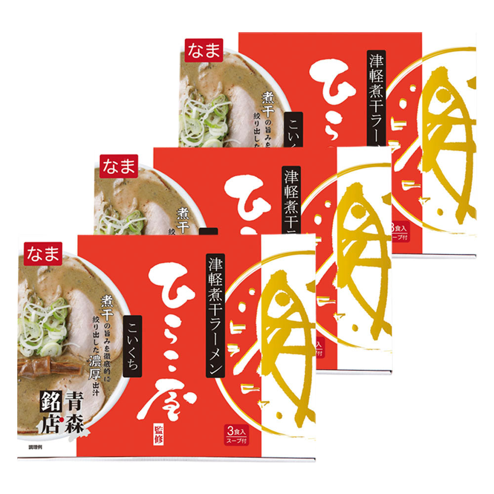 素材の旨みを徹底的に引き出した強烈な煮干しスープが癖になる中華そば ひらこ屋 濃口煮干しラーメン3食箱×3セット。各グルメサイトにおいて多数の受賞歴のある青森県のご当地大人気ラーメンをご自宅でご賞味いただけます。