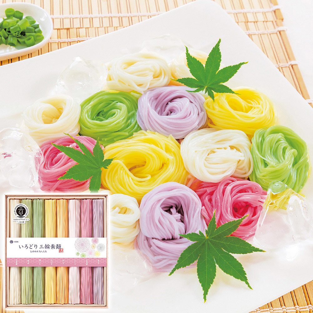 池利 いろどり三輪素麺(白・抹茶・青しそ・カボス・柚子・桜・梅・紫芋各1束) CL-20A 1244-049 / 常温 送料無料 セット そうめん 素麺