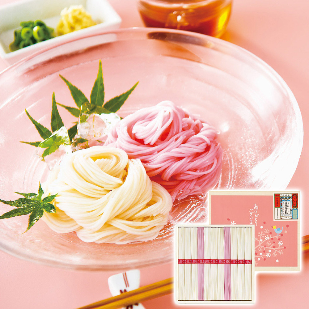 職人が丹精こめて作った手延素麺。鮮やかな紅白の詰め合わせが喜びと感謝を伝えます。