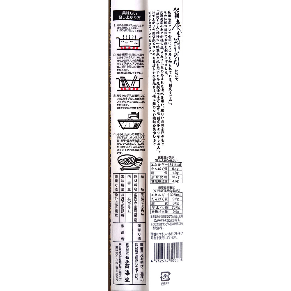 稲庭うどんの「こだわり抜いた原料」と「受け継がれてきた伝統製法」を活かして製造したそうめんです。
