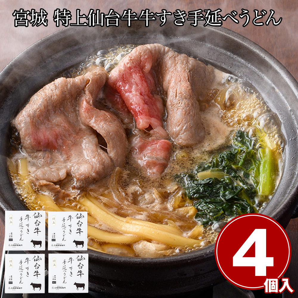 宮城 特上仙台牛 牛すき手延べうどん4食 / 冷凍 送料無料