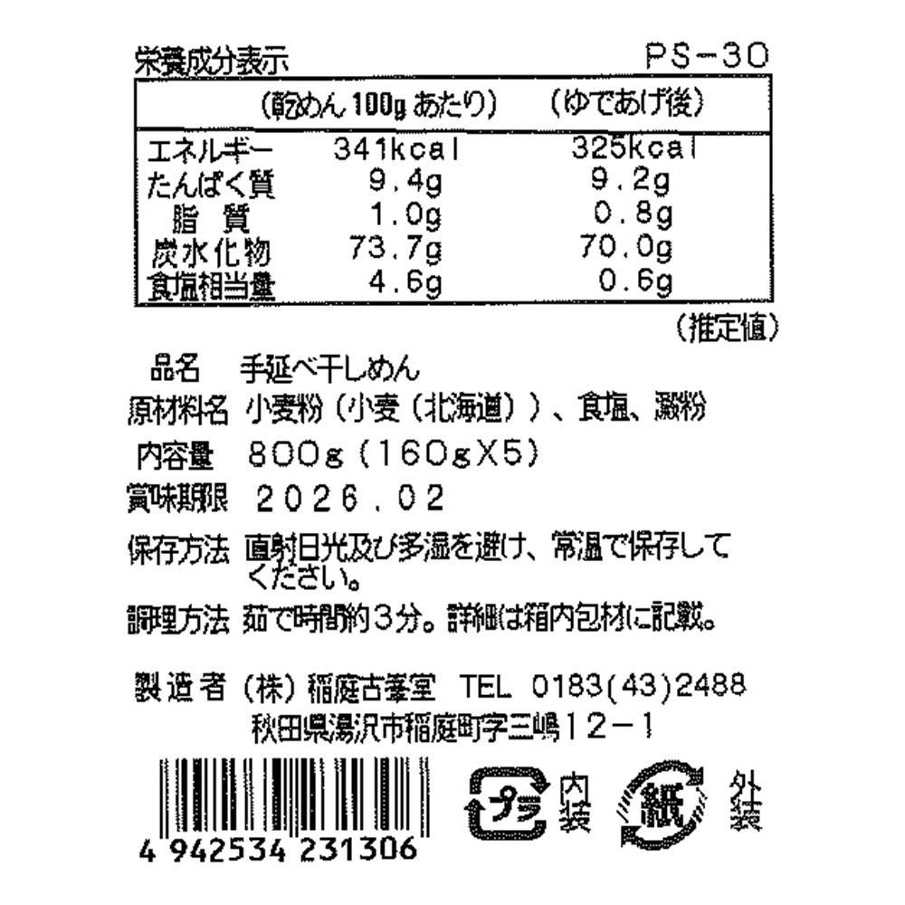 古峯堂 稲庭うどんギフト 特金印160g×5 / 常温 送料無料 うどん ギフト