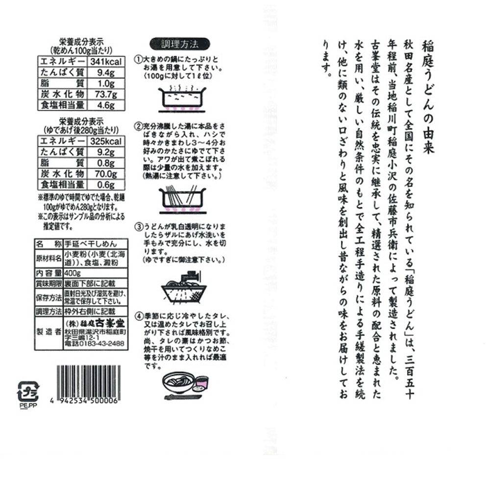 【3個~購入可】古峯堂 稲庭うどん 徳用 400g / 常温 送料無料 うどん 訳あり お徳用
