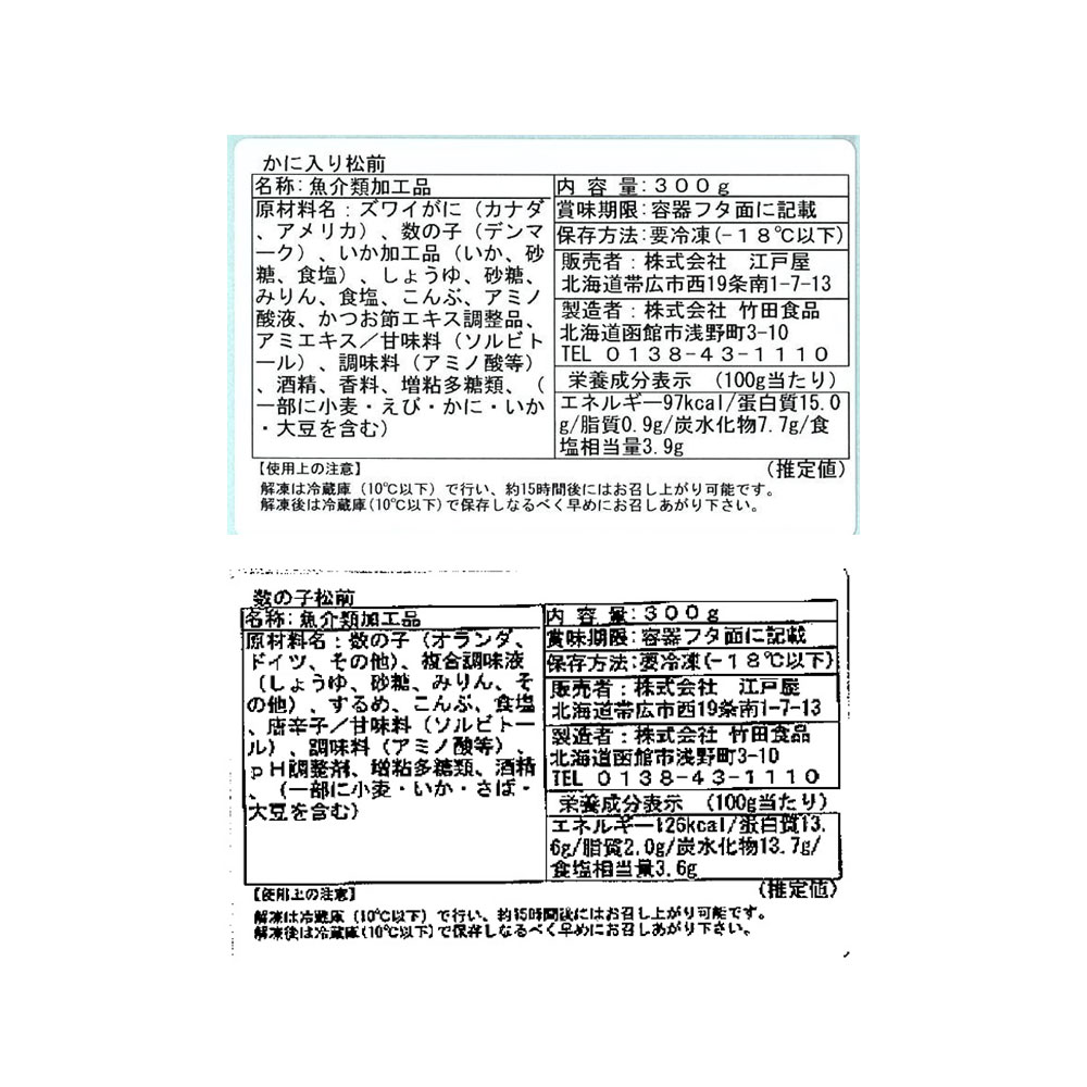■規格:数の子松前漬300g×1、かに松前漬け300g×1