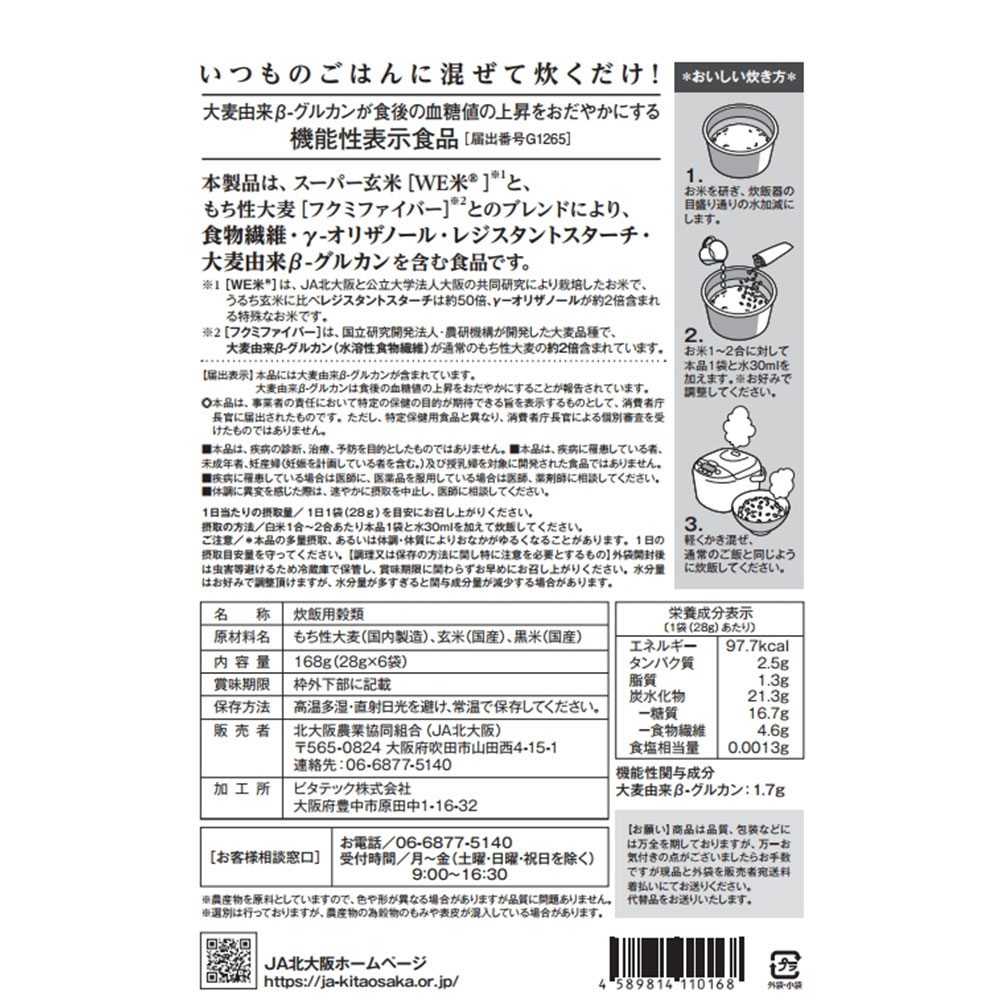 ■原材料名/食品添加物:玄米(WE米)、もち性大麦(フクミファイバー)、黒米