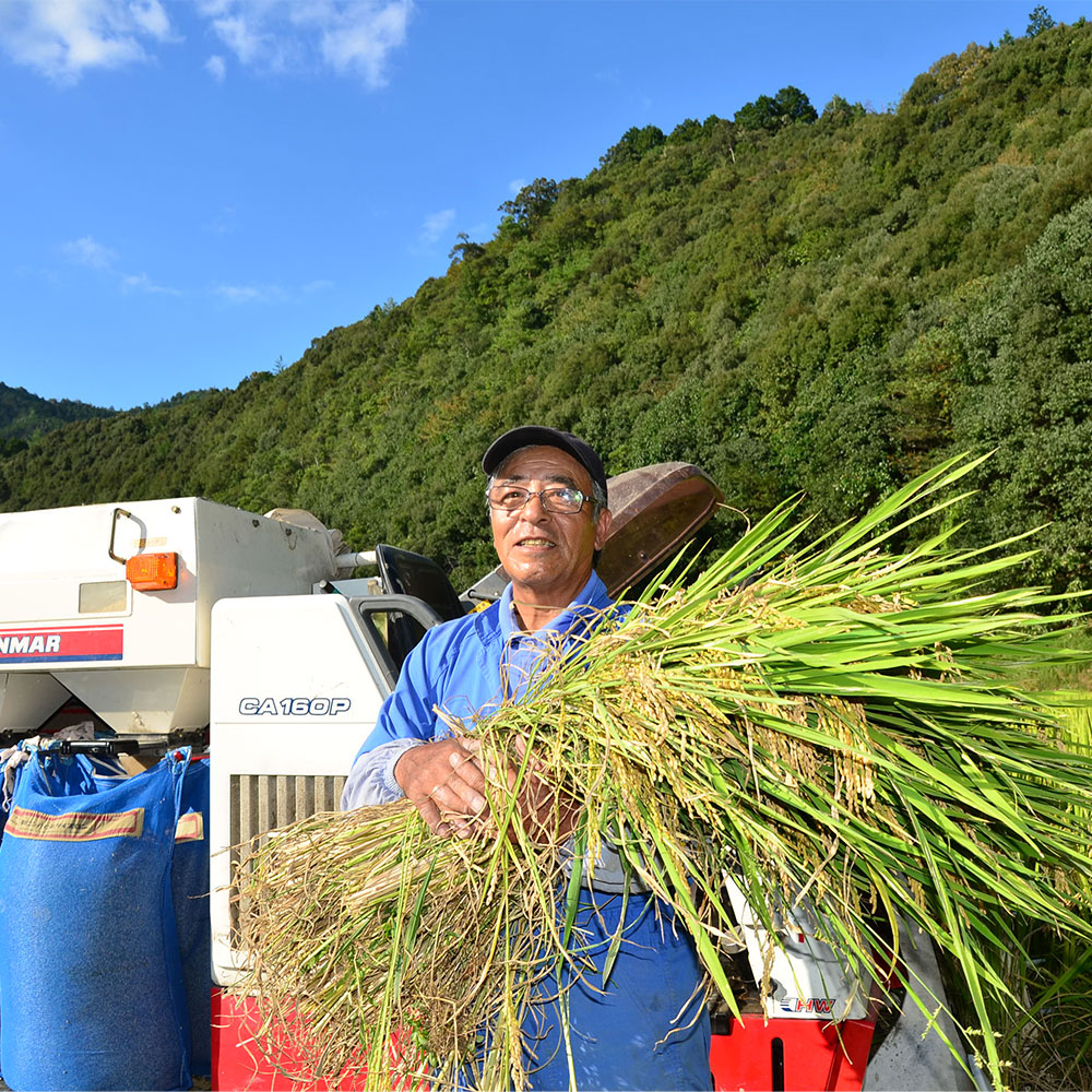 この「四万十のお米」は、四万十川水系の綺麗な水と、充分な太陽の恵みを受けて丹誠込めて育てられた、安心安全なお米です。田んぼには清流・四万十川水系の支流のたくさんの川と山からの清水を利用しています。昔ながらの里山農家が丹誠込めて作っている低農薬栽培のお米「四万十のお米」。田植えから稲刈り、保存、精米、そして食卓に上がるまで…。どの行程も決して手を抜く事なく、大切に育て上げる。昔から特に変わった事はしていません。当たり前の事をするだけです。そういうことが今の世においては、本当の贅沢なのかもしれません。米作りは、「八十八と書いて「米」という字になるように88の手間ひまがかる」と言われています。四万十の農家の方は声をそろえてこう言います。「米作りの労力と手間を考えると、作るより買った方が格段に安い」。まさにその通りで、これが素直な声です。しかし、こんな時代だからこそ、農家だからこそ、生産性よりも質、安全で安心して食べられる物にこだわれるのだと思います。「美味しいお米」とこそ謳っていますが、ここに住む人々にとっては、これが子供の頃からの当たり前の味なのです。