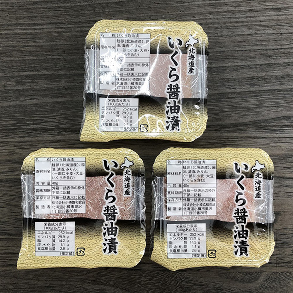 ■原材料名/食品添加物:鮭卵(北海道産)、醤油、清酒、みりん、(一部に小麦・大豆・いくらを含む)