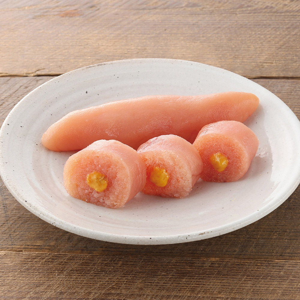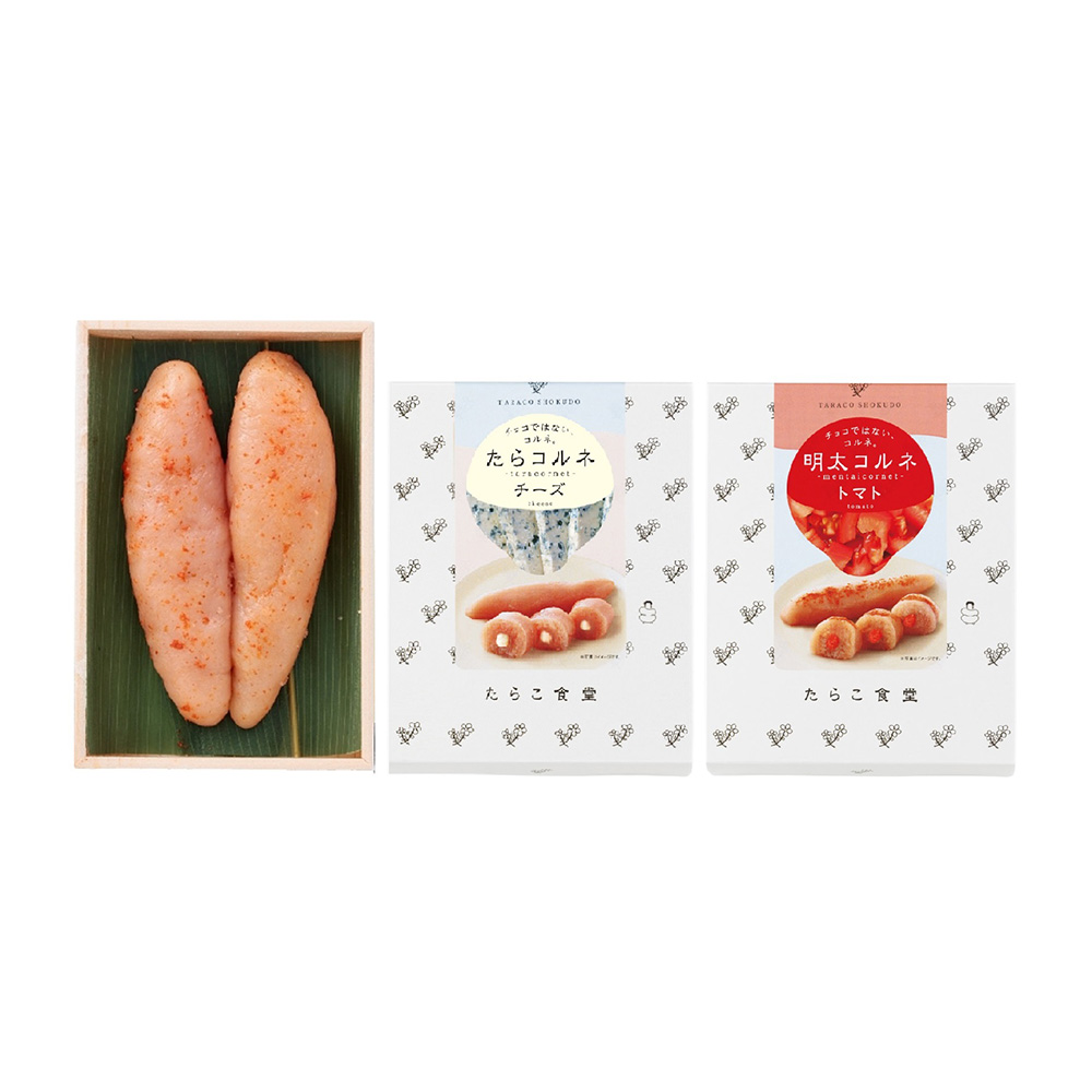 ■規格:辛子明太子(あごだし味)100g、明太コルネ(トマト)100g、たらコルネ(チーズ)100g