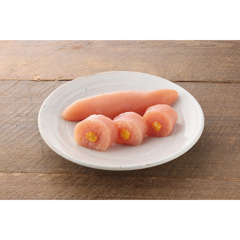 じっくり漬け込み仕上げた旨味たっぷりの辛子明太子(あごだし味)と明太子とトマトが織り成す辛味・甘味・酸味が絶妙な「明太コルネ(トマト)」、芳醇なたらこの塩味と、とろけるほど濃厚なチーズのクリーミーなコクと旨味が溢れ出す「たらコルネ(チーズ)」、たらこの食感はそのままにうにのペーストを入れた、いつもと違う味わいの「たらコルネ(うに)の詰合せです。従来の明太子と新しい食べ方の明太子・たらこを是非。