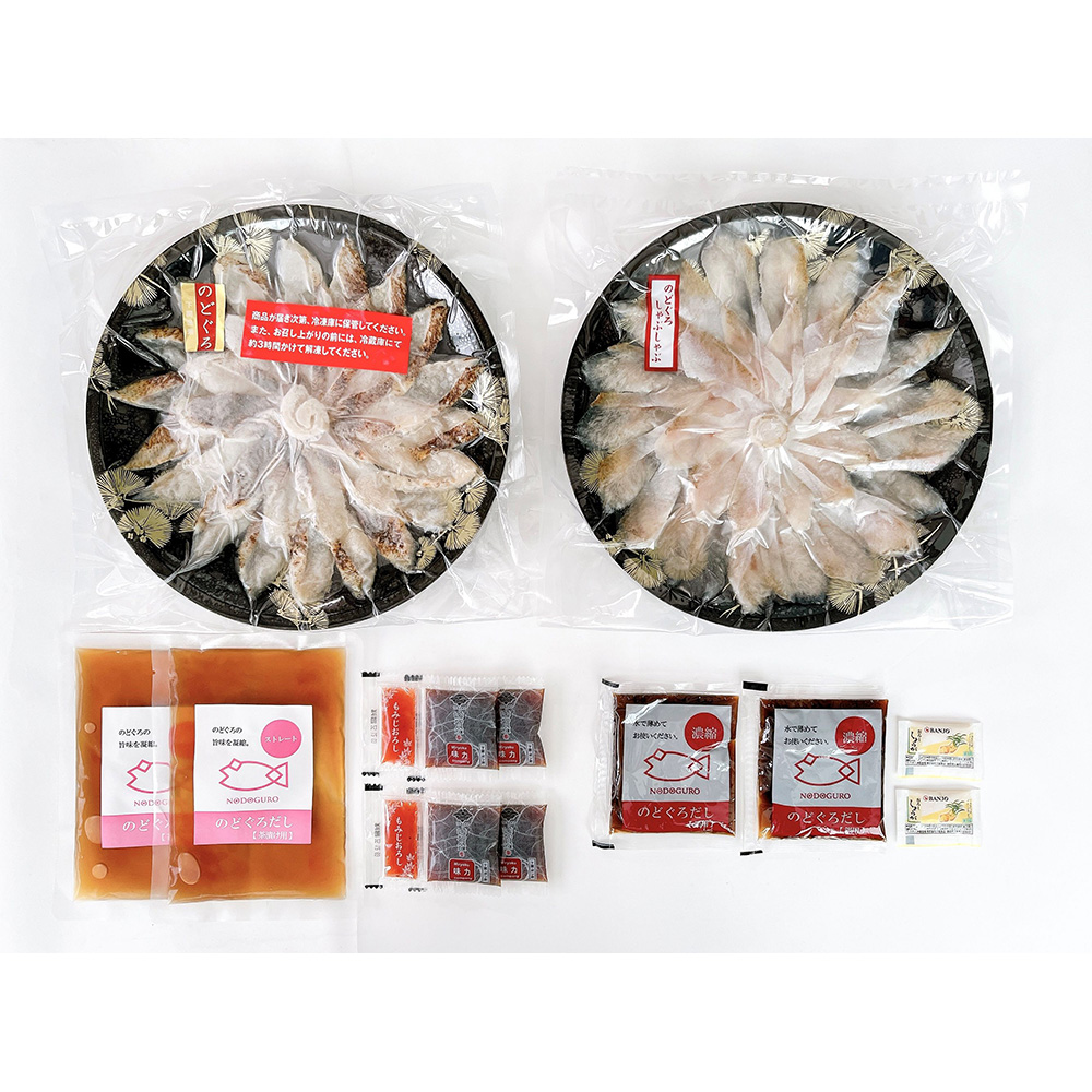 ■規格:のどぐろ炙り刺し120g、のどぐろだし(出汁茶漬け用)100g×2、ポン酢14g×4、もみじおろし2.5g×4、のどぐろしゃぶしゃぶ140g、のどぐろだし(鍋用)50g×2、おろししょうが2.5g×2