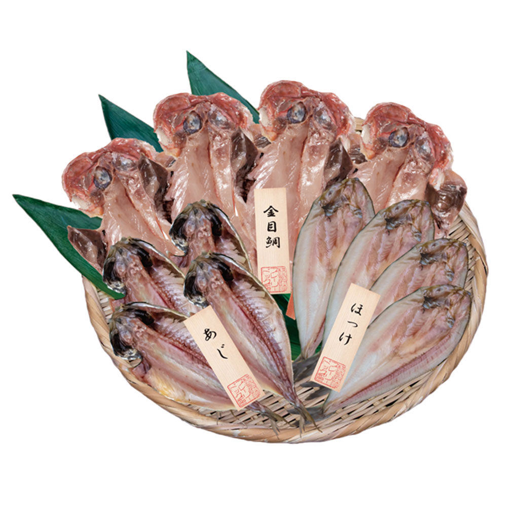 ■規格:干物詰合せ 12尾セット(あじ×4尾、ほっけ×4尾、金目鯛×4尾)
