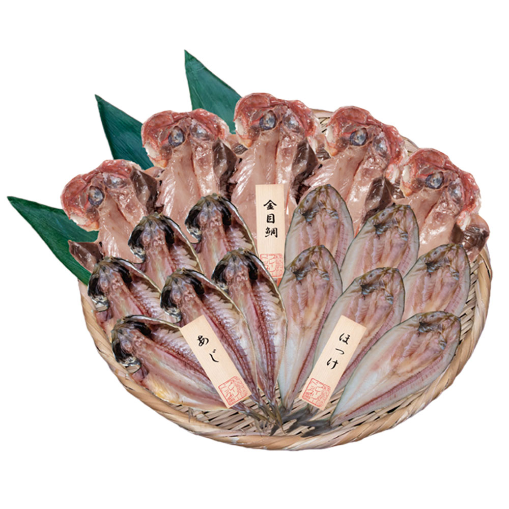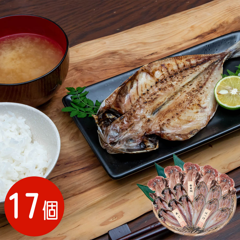 ■規格:干物詰合せ 17尾セット(あじ×6尾、ほっけ×6尾、金目鯛×5尾)