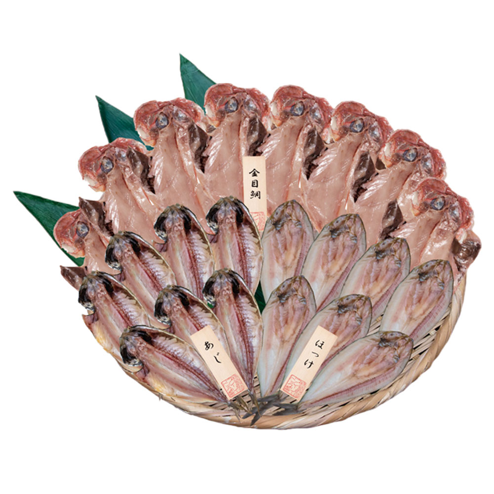 ■規格:干物詰合せ 22尾セット(あじ×7尾、ほっけ×7尾、金目鯛×8尾)