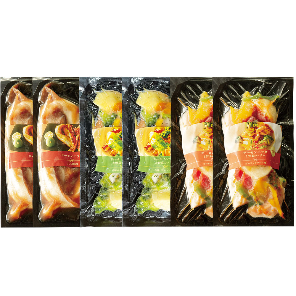 鮭の中でも高い人気のアトランティックサーモンのハラミ。野菜とフレンチ風ソースで2種類の洋風ソテーとオリジナルのもろみ醤油にじっくりと漬け込んだ和風のソテーの組み合わせです。下ごしらえ、味付けされているのでサッとフライパンで簡単に調理でき、さらに骨とりずみなのでお子様やご高齢の方にも安心してお召し上がりいただけます。