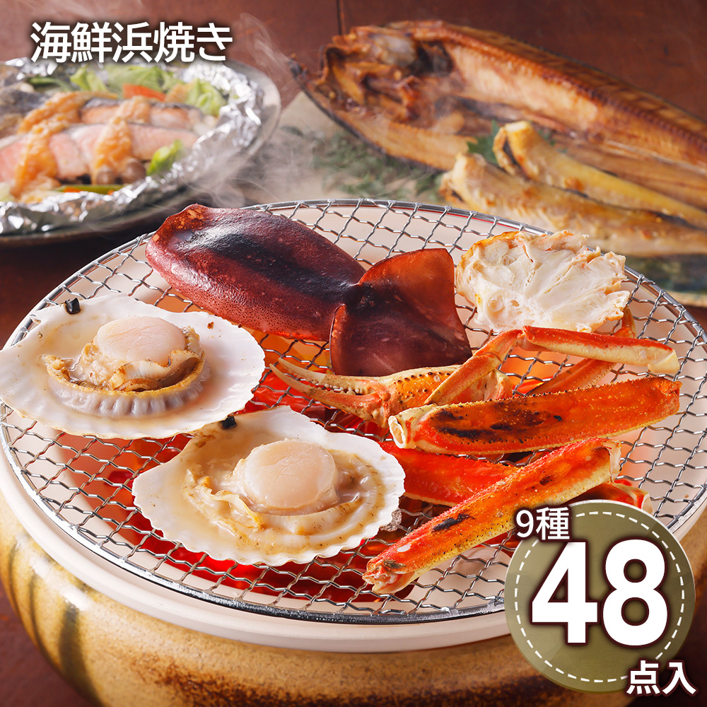 北海道 海鮮浜焼きセット(ゆでずわいがにカット×1、生たらばがにカット×1、帆立片貝×8、たこ入つみれ×18、鮭のちゃんちゃん焼き×4、添付味噌たれ×4、ツボ抜きいか×2、姫鱈一夜干し×8、ほっけ(開き)一夜干し×2) / 冷凍 送料無料 詰め合わせ
