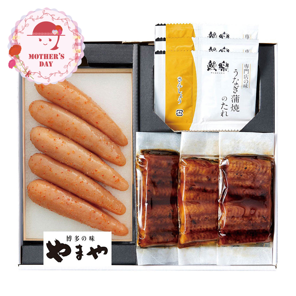 北海道産羅臼昆布・九州産柚子・独自ブレンドの唐辛子で構成されたやまやの匠のたれでじっくり168時間漬け込んだこだわりの辛子明太子と国産のうなぎの詰め合わせです。