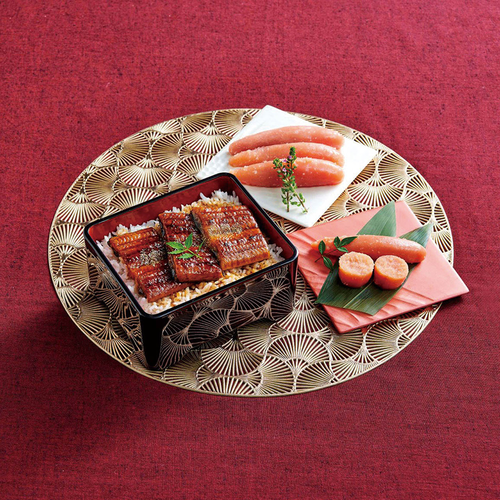 じっくり168時間漬け込んだこだわりの辛子明太子と国産のうなぎの詰め合わせです。