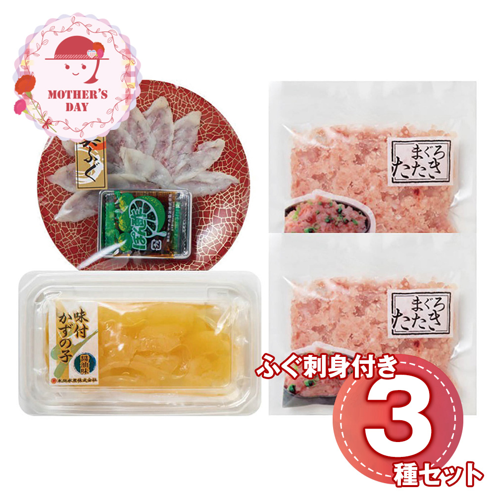 【母の日】 海ノ幸 3種詰合せ(ふぐ刺身付き)(ふぐ刺身、味付かずの子×各1、まぐろたたき×2) 6395-35 1852-810 【二重包装不可】《お届け期間:2026年5月8日~2026年5月10日》 / 冷凍 送料無料 セット ギフト ふぐ フグ 数の子 マグロ